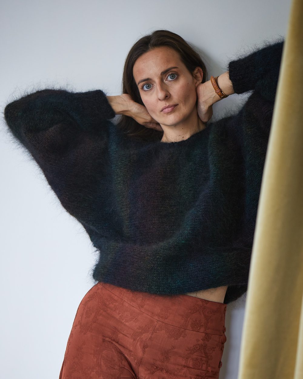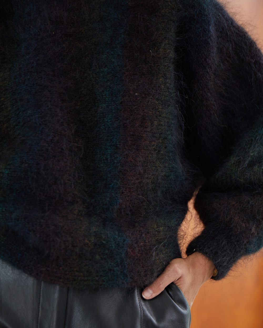 Cette maille d’exception est entièrement confectionnée à la main, le tout avec soin et amour avec la plus douce des laines mohair.